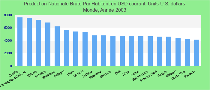 Production Nationale Brute Par Habitant en USD courant: Monde