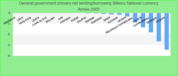 Primary net lending/borrowing is net lending (+)/borrowing (?) plus net interest payable/paid (interest expense minus interest revenue). Billions National currency.
