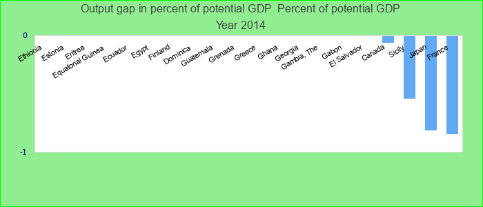 Output gaps for advanced economies are calculated as actual GDP less potential GDP as a percent of potential GDP. Estimates of output gaps are subject to a significant margin of uncertainty. For a discussion of approaches to calculating potential output, Percent of potential GDP.