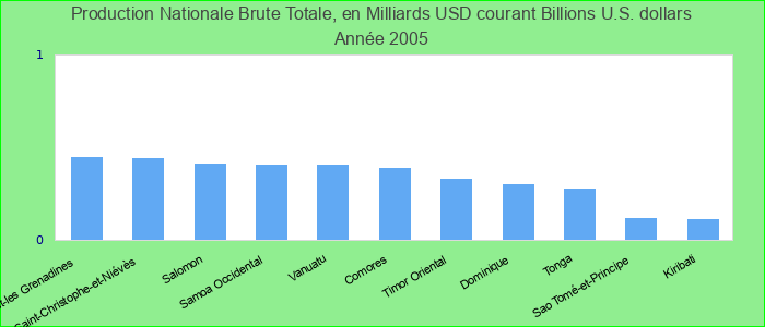 Production Nationale Brute Totale, en Milliards USD courant 2005