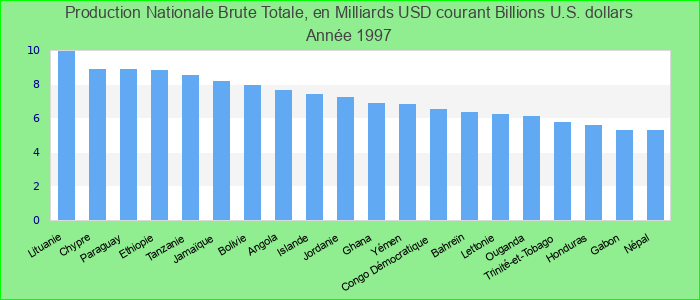 国内毛总产值以当前10亿美元为单位: 1997