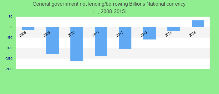 Net lending (+)/ borrowing (?) is calculated as revenue minus total expenditure. This is a core GFS balance that measures the extent to which general government is either putting financial resources at the disposal of other sectors in the economy and nonr Billions National currency.